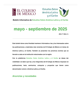 Con esta plataforma se desea dar visibilidad a la labor que los integrantes de El Colegio de México impulsan en publicaciones, tesis, seminarios, coloquios y proyectos que tienen como denominador común a América Latina y el Caribe.